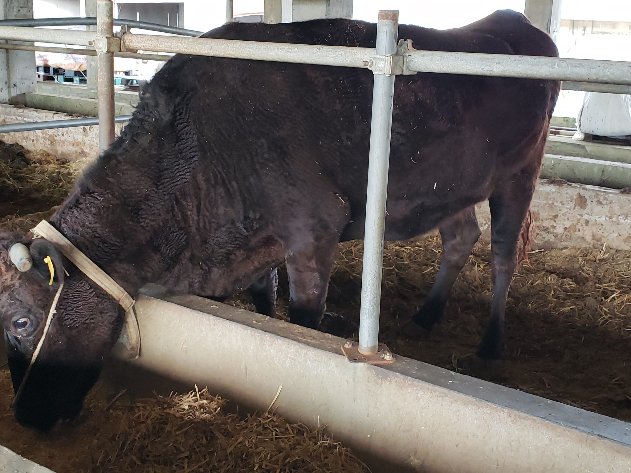 以前、県共にも行った牛です……😀とにかくよく食べます。飼料も祖飼料もいつも、ペロッと食べて「もっとちょうだい」と言ってるようです…(笑)期待の1頭、5月頃の予定です。